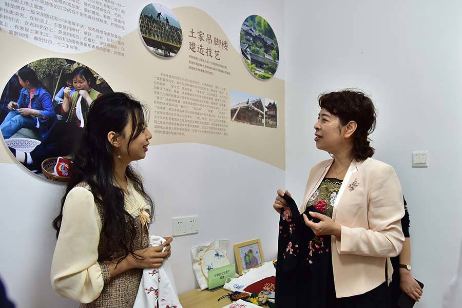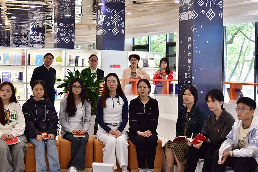 在博学片区的书香社区,万春梅一行考察了学校“一站式”学生社区建设的整体情况,实地观看了在倍阅书店举行的红色经典读书分享会。在立人片区的心语社区,万春梅一行调研了大学生社区的美育实践活动,通过观看《老兵》宣传片、观摩365电子娱乐官方网站学生合唱团的合唱排练、参观同学们创作的扎染蜀绣等非遗传承项目作品,与师生探讨了民族院校推进文化传承发展的课题。万春梅一行还到航空服务模拟仓实地观摩了航空服务艺术与管理专业的实践教学,并查看了学校文明校园创建工作的相关台账。