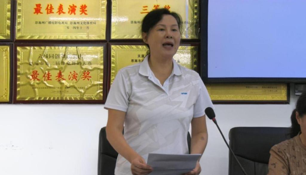 运动员代表张瑛发言,她代表全体运动员承诺,严格遵守比赛规则,团结一心,坚决服从组委会和教练的安排,尊重每一位比赛对手,以饱满的热情和高昂的斗志投入比赛。