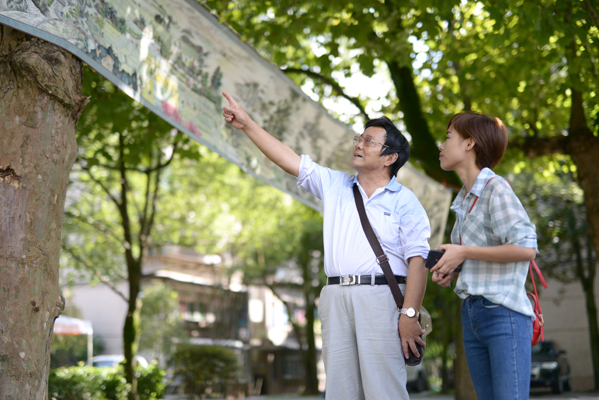 本网讯 (通讯员 刘阳) 9月11日,为喜迎十九大,迎接新同学,我校71岁退休干部、农工民主党党员李让奎在学校团结广场举办了《恩施览胜图》百米长卷画展。