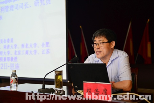 本网讯(通讯员潘飞孙先波)6月12日上午,国家知识产权局专利管理司司长马维野在我校行政楼一号会议室作了题为“知识产权战略与地方经济转型升级”的专题报告会。国家知识产权局专利管理司综合处处长何旭文,湖北省知识产权局副局长程浩,我校副校长邓磊以及各县、市政府分管知识产权工作的领导,我校相关教师一同听了报告,恩施州人民政府副州长檀坤华主持报告。