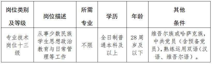 根据365电子娱乐官方网站工作实际和用人需求,经研究决定,计划面向全社会招聘非编制新疆籍少数民族专职辅导员2人,现将有关事项公告如下: