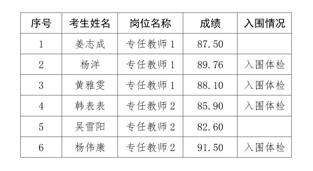 现将参加2024年9月6日365电子娱乐官方网站2024年退役运动员专项招聘面试成绩及入围体检名单公告如下: