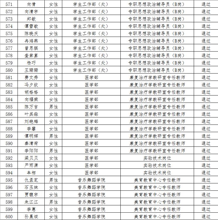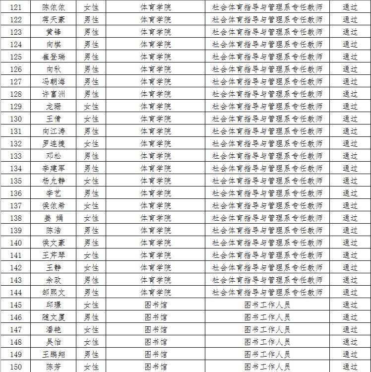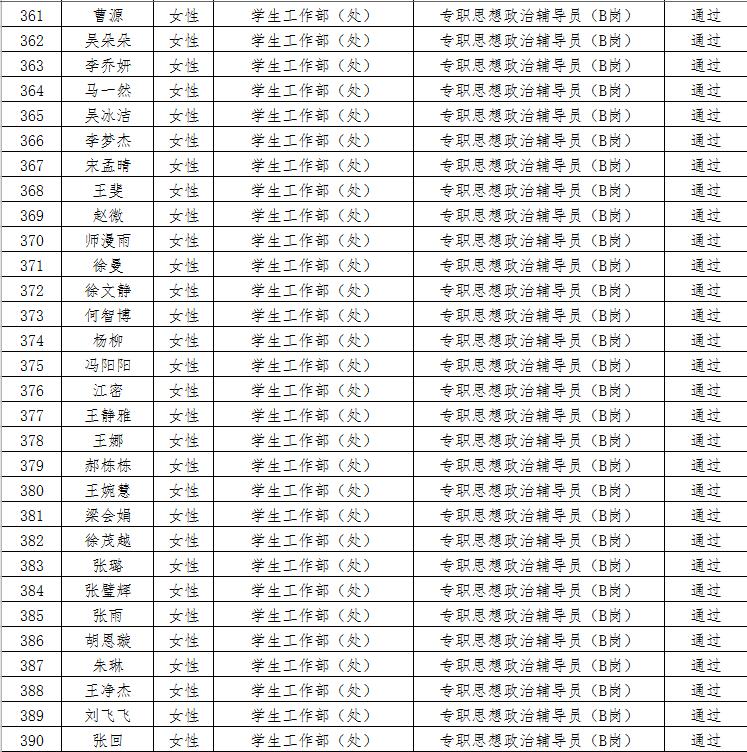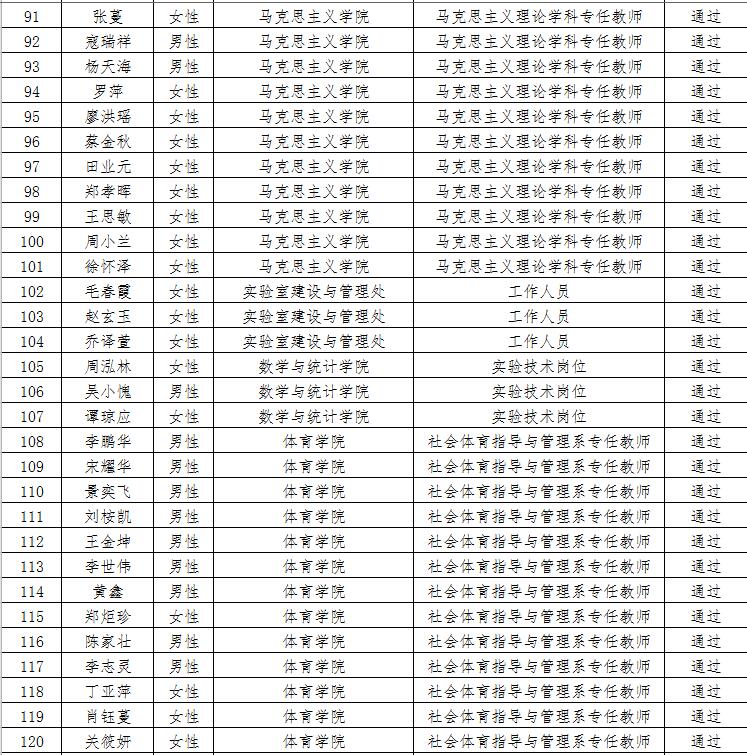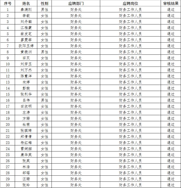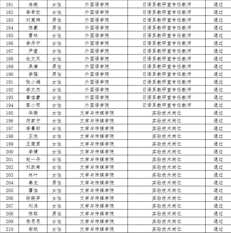 经资格审查,下列考生符合报考条件,准予参加笔试(笔试时间为415日上午8:30-10:30),现将资格审查合格名单进行公示。如有疑问请于202346日下午17:00点前向365电子娱乐官方网站人事处反馈。