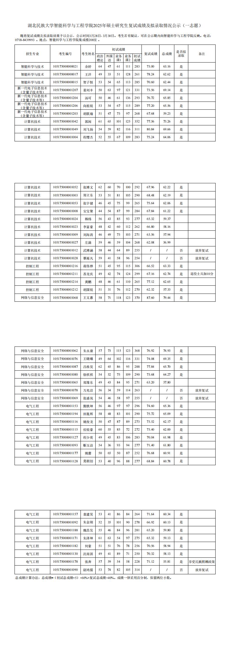 365电子娱乐官方网站智能科学与工程学院2025年硕士研究生复试成绩及拟录取情况公示(一志愿)