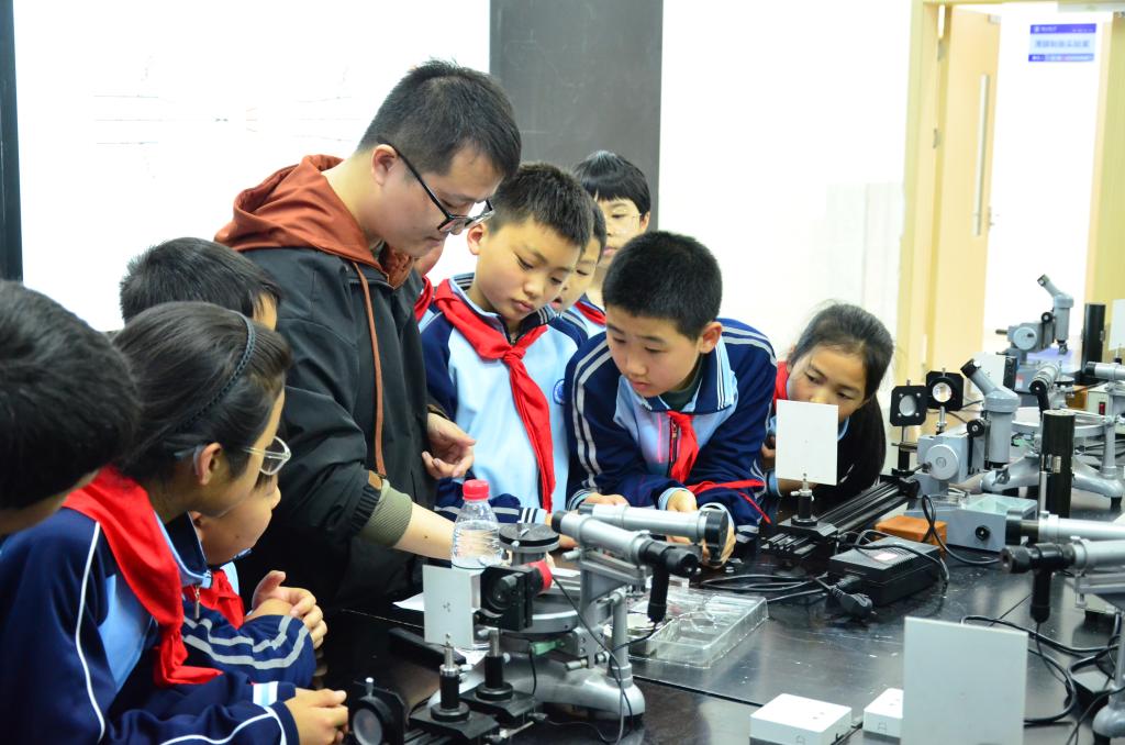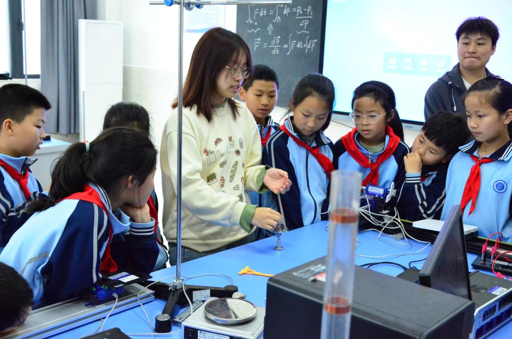 活动分为参观实验室和参与实验两个部分,现场志愿者带领学生们参观了PASCO实验室、电磁学实验室、力学热学实验室等。
