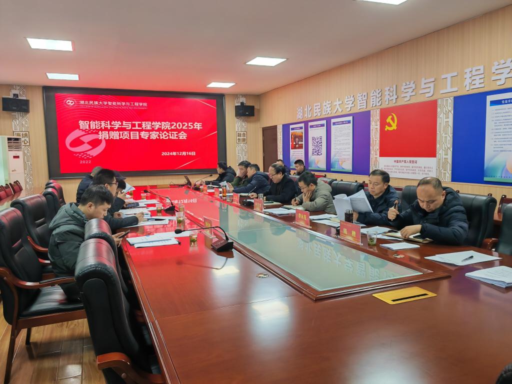 2024年12月16日,智能科学与工程学院在集成楼212会议室召开了智能制造虚拟仿真实验室建设专家论证会,出席论证的专家有恩施职业技术学院机电工程学院院长牛全峰、恩施职业技术学院教务副处长高祖彦、湖北省楚天视讯网络有限公司恩施分公司政企业务部部长刘作胜、365电子娱乐官方网站国家民委重点实验主任李时东、365电子娱乐官方网站信息化建设与管理中心副主任汪涛。学校招生就业与校友联络处处长严森、副处长杜锐,实验室建设与管理处处长雷辉、副处长李永亮,智能科学与工程学院执行院长陈世强、党委书记孙先波、副院长沈济南、钱楷以及项目负责人参加会议。