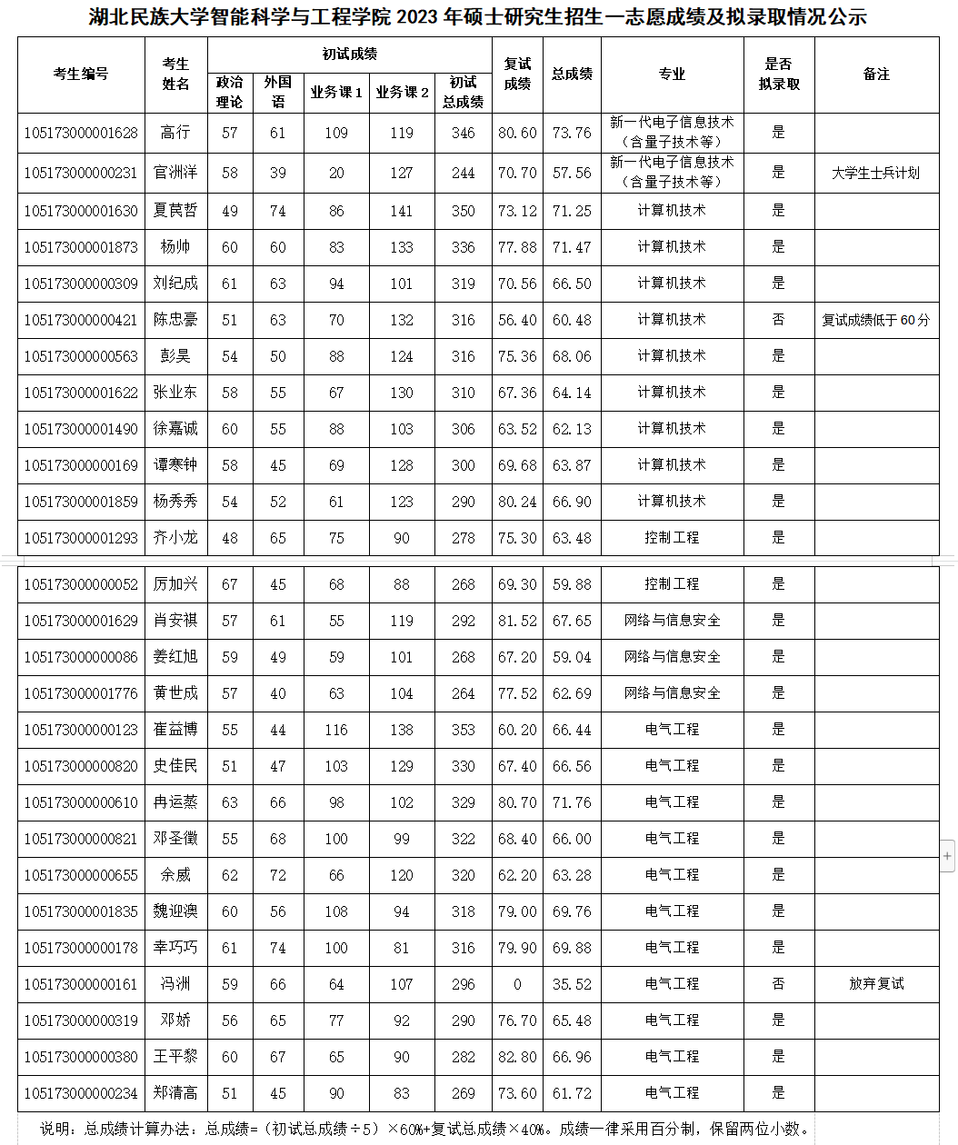 365电子娱乐官方网站智能科学与工程学院2023年硕士研究生招生一志愿成绩及拟录取情况公示