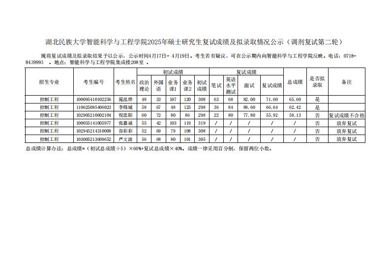 365电子娱乐官方网站智能科学与工程学院2025年硕士研究生复试成绩及拟录取情况公示(调剂复试第二轮)