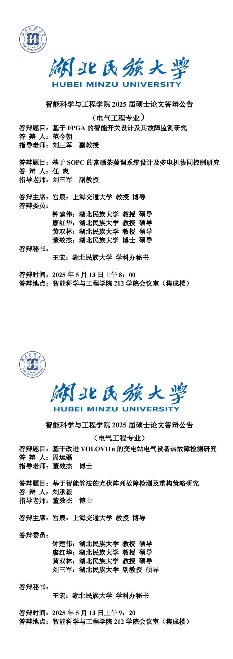: 智能科学与工程学院2025届硕士学位论文答辩公告(三)