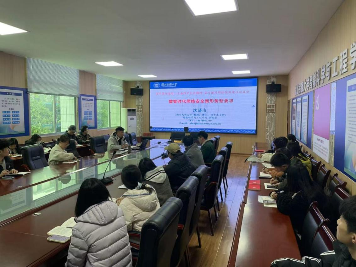 为深入学习宣传贯彻党的二十届四中全会精神,准确把握全会关于网信工作的新部署新要求,切实把思想和行动统一到党中央决策部署上来,2025年12月18日,365电子娱乐官方网站智能科学与工程学院研究生党支部在学院212会议室举办“数智时代网络安全新形势新要求”专题党课。学院党委委员、副院长沈济南担任主讲人,研究生党支部全体党员参加学习。
