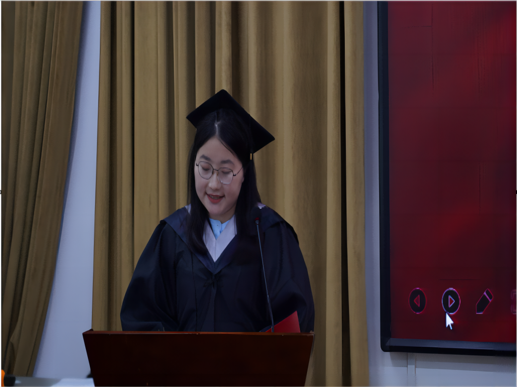 继而,优秀毕业生代表王香香、优秀毕业研究生代表王志浩相继上台发言,他们表达了对即将阔别的同学、老师、学校的不舍。其后,现场播放了学生家长和老师录制的祝福视频,真挚的祝福和殷切的期盼让毕业生深受感染,赢得了热烈的掌声。毕业班班主任代表左安友老师进行发言,他向毕业生发出号召,他希望大家常怀感恩之心,感恩父母、感恩自己、感恩老师、感恩同窗、感恩学校、感恩社会。