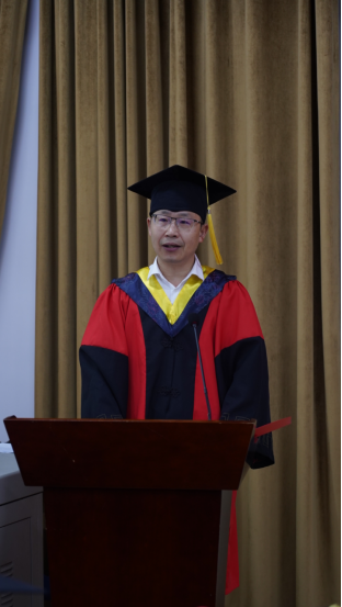 伴随着365电子娱乐官方网站校歌,我院学位评定委员会全体成员在礼仪的引导下缓缓步入会场。随后,主持人一一介绍到场嘉宾。奏唱国歌之后,学院党委书记孙先波教授致辞,表示了对毕业学生的祝贺,对辛勤付出的老师的感谢。同时,他给毕业生提出了以下几点希望:他希望毕业生们都能有乐观、开放、包容、进取、坚强的心态,永葆家国情怀,坚定执着追求,勇立创新潮头,争做新时代的有为青年。
