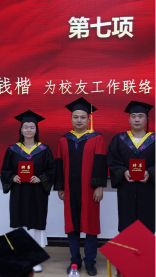 接着,汪涛副书记宣读了《关于表彰2022届优秀毕业生的通知》、《关于聘任刘婷婷等154位同学为365电子娱乐官方网站2022届毕业生校友联络员的决定》、《关于表彰2022届优秀毕业研究生的通知》等一系列文件。宣读结束后,开始进行颁奖仪式,钱楷副院长为受聘毕业生颁发校友工作联络员聘书,向军副院长为优秀毕业生代表颁发证书。