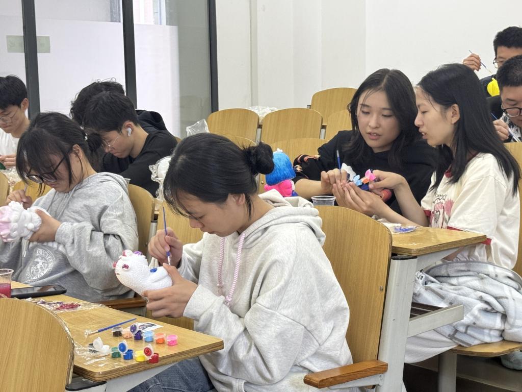 活动开始后,“画家”们拿起手中的画笔静下心来和同伴一起在小小的石膏娃娃上绘出他们心中的色彩,没有局限于固定的色彩搭配,每一组的石膏娃娃都是每组“画家”情感的倾注,是那么的独一无二。在色彩的渲染与勾勒中,石膏娃娃被赋予了生命参与者们沉浸在创作的喜悦中,每一笔都透露着他们的个性和梦想。