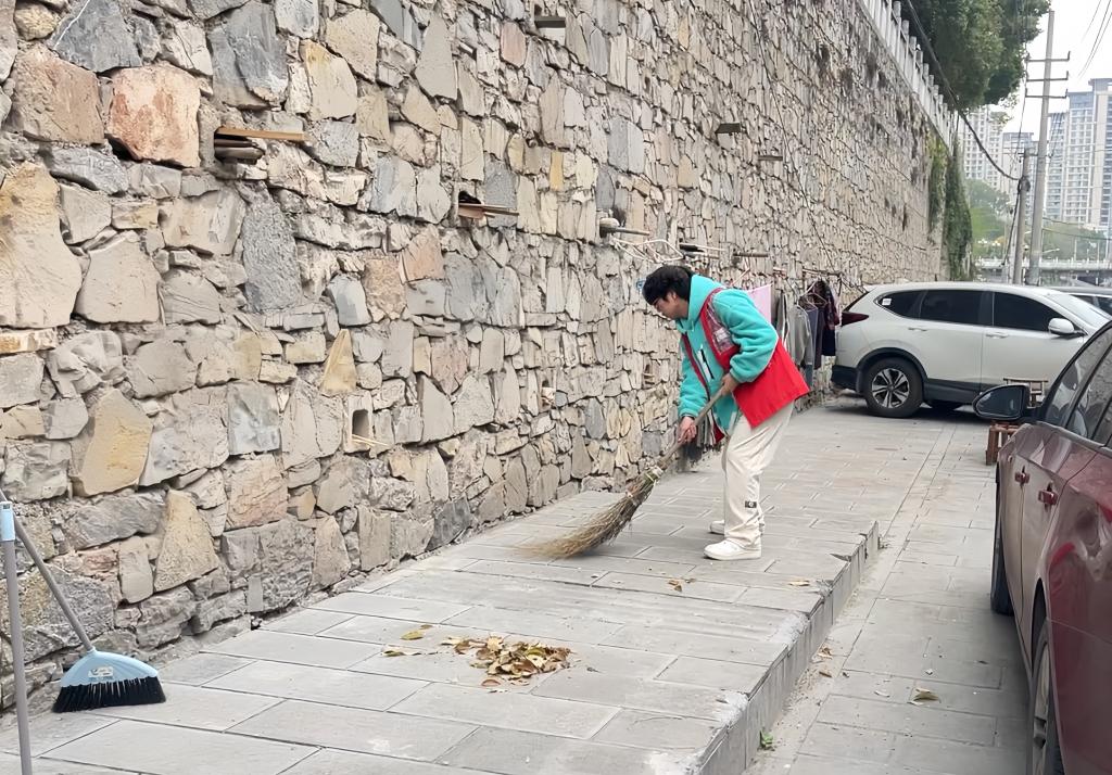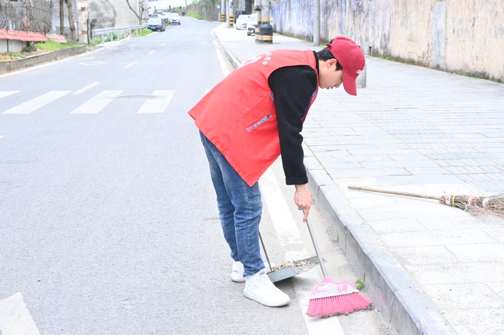 从6:00到10:30,志愿者们分为5组,分别与负责不同街道的环卫工人一起开展清洁任务。清晨的街道上,落叶与垃圾遍布,志愿者们手持扫帚,弯腰捡拾,一点点清扫街道的每一个角落。