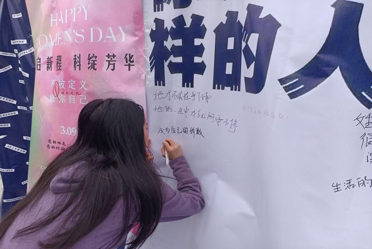 3月7日下午两点,妇女节手工欢歌活动准时开启。女教师们热情高涨,积极参与手工面包制作和插花艺术学习。在面包制作过程中,大家相互协作,揉面团、添配料,现场满是欢声笑语。学习插花时,老师们充分发挥创造力,将各类鲜花搭配成精美作品。活动临近尾声,女教师们一展歌喉,动听的歌声萦绕现场,温馨而热烈的氛围将活动推向高潮。 3月9日下午两点,以智启新程,科绽芳华为主题的女生节活动在大学生广场正式举办,吸引全校学生广泛参与。本次女生节活动围绕三个篇章有序展开。诗韵词香,悦享时光环节,学生们在校园摊位前临摹诗词,体悟传统文化的韵味与魅力。;烛影映心,香韵悦己区,大家亲手制作香薰蜡烛,在创作中舒缓身心。打破定义,书写篇章环节尤为出彩,女生们写下对自我的全新认知,勇敢挣脱刻板标签的束缚,展现自信、独立的新时代女性风采。