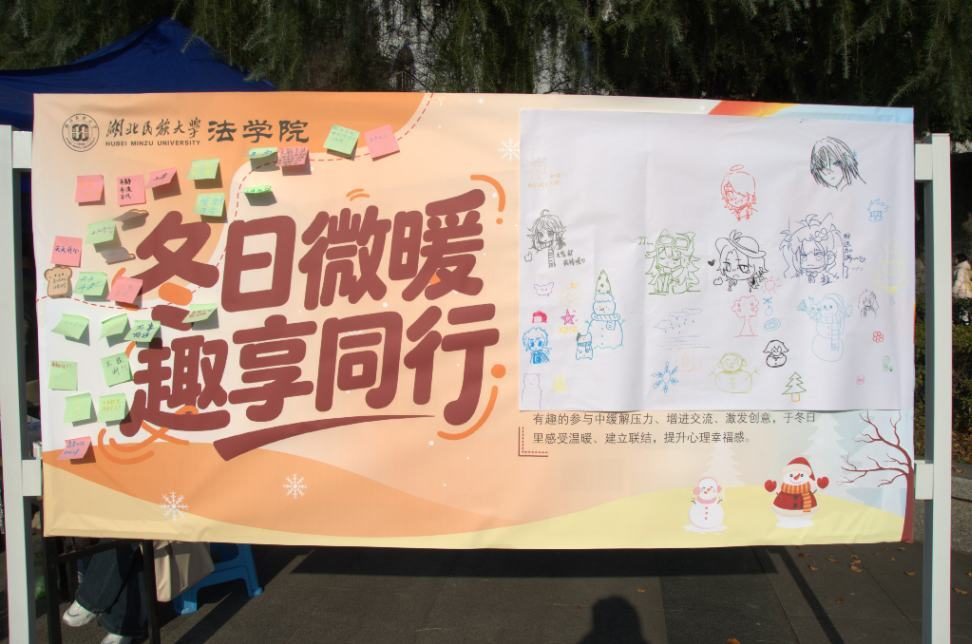 2025年12月6日下午,365电子娱乐官方网站智能科学与工程学院心理健康工作坊与法学院公寓委员会在大学生广场开展了一场主题为“冬日暖阳,趣享同行”的心理健康主题活动。随着气温渐降,学习压力的增大和生活节奏的加快,不少同学难免会出现情绪低落、社交意愿减弱等季节性心理波动。为着力营造温暖互助的校园氛围,我们特别策划了本次主题心理体验活动。