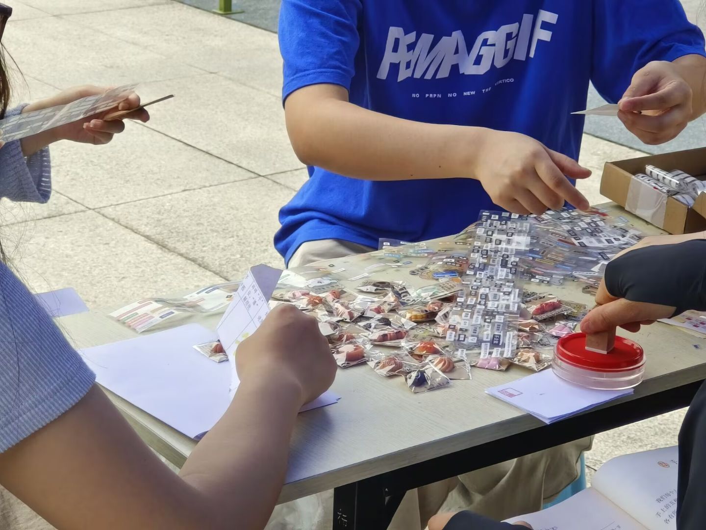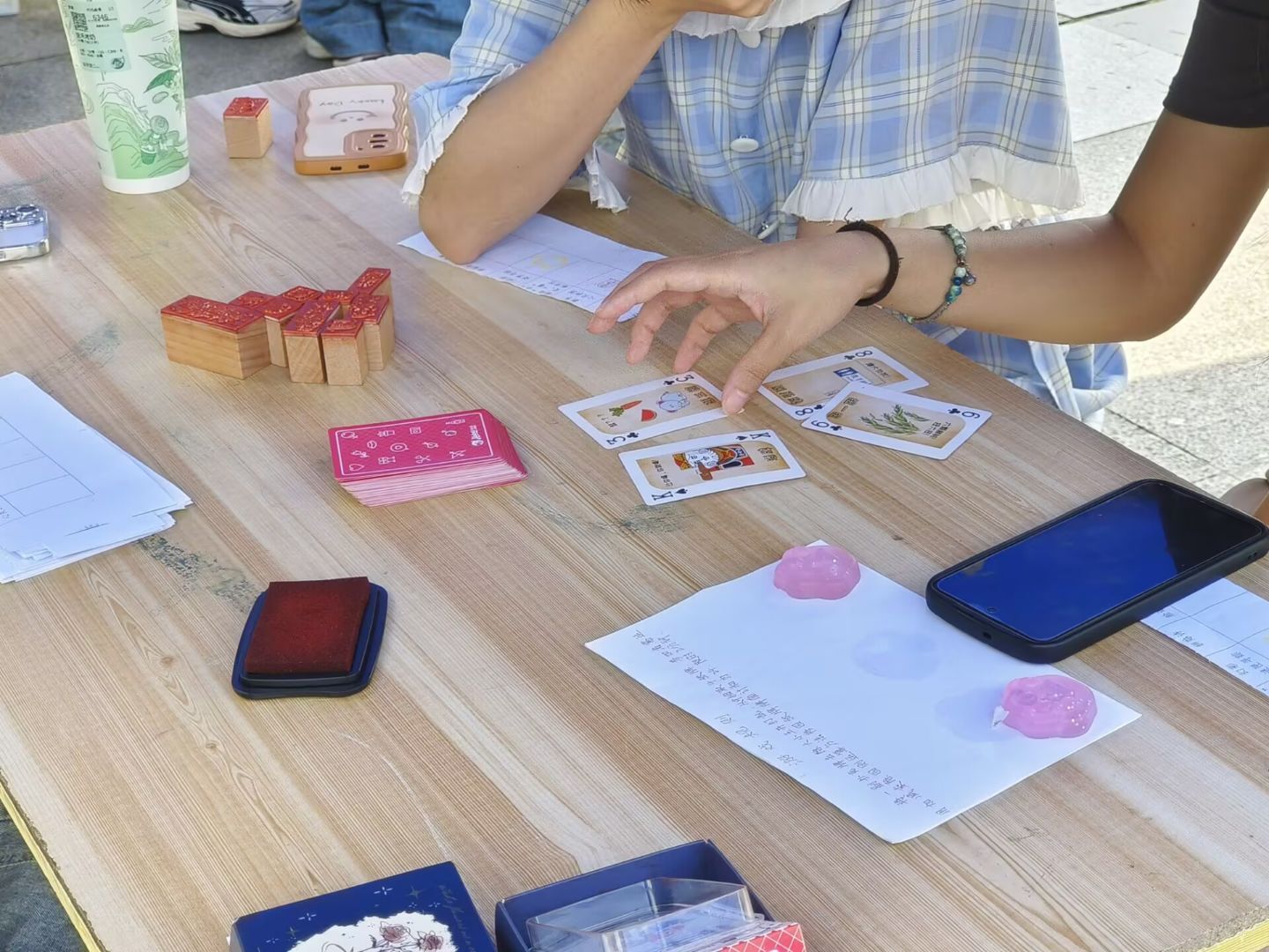 林学园艺学院“碎碎‘平’安,‘爆’解烦忧”摊位成为热门打卡点。学生用便签纸书写烦恼,通过粉碎、剪碎或踩爆气球等仪式感操作宣泄压力,在趣味互动中实现心理调节。民族学与社会学学院“拼贴诗”摊位则鼓励学生用词语卡片创作诗歌,在文字重组中探索内心、抒发情感。
