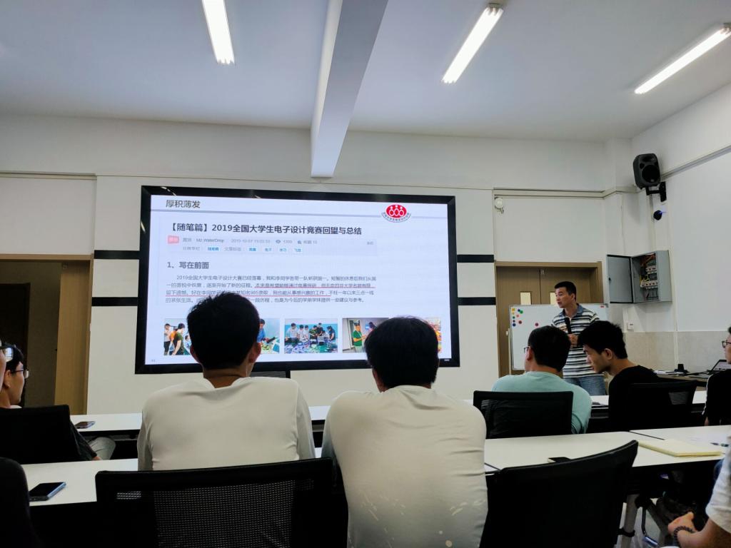 会上,创新中心负责人徐建老师分享了多年来在电赛中积累的经验和学生取得的喜人成绩,并对今年电子设计大赛的注意事项和比赛流程进行了简要的介绍,特别强调团队间的配合和时间分配问题,希望同学们克服困难、积极备赛,做出自己满意的作品。