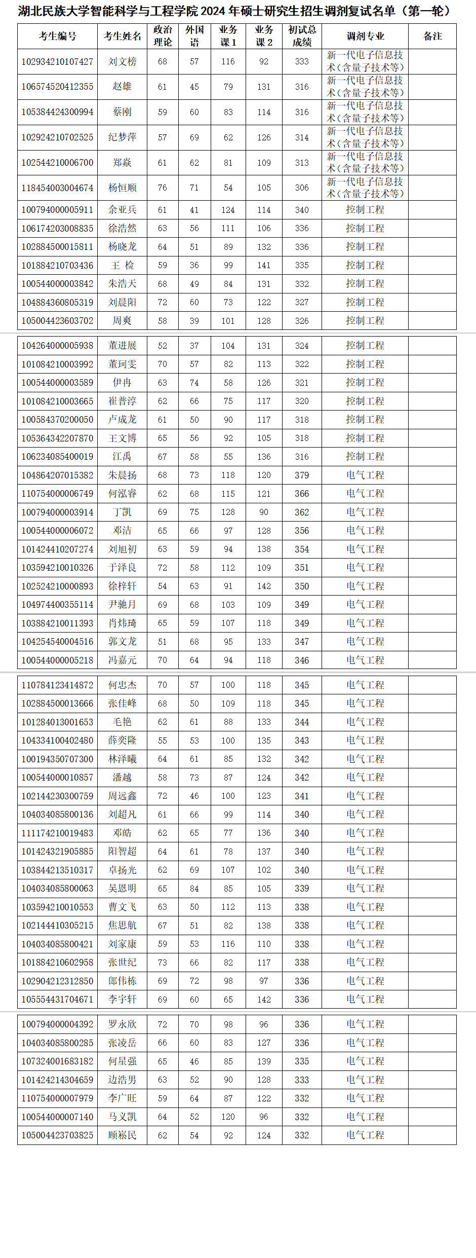 365电子娱乐官方网站智能科学与工程学院2024年硕士研究生招生调剂复试名单(第一轮)