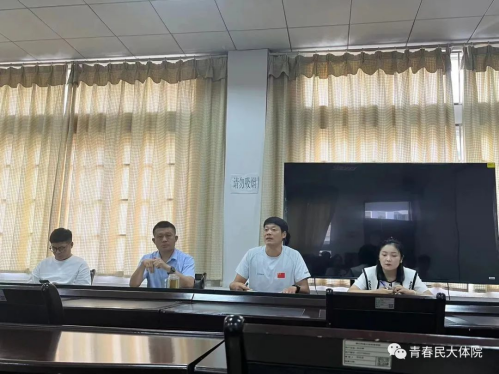 体育学院党总支书记何斌、党总支副书记万利、学生科负责人张弋明、团总支书记黄昱勍及体育学院所有学生干部参加会议。