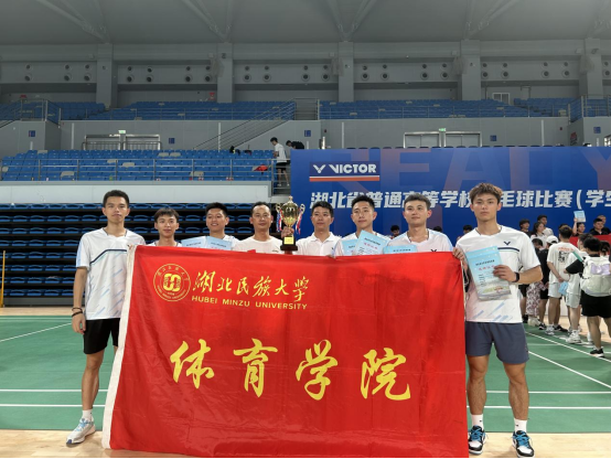 2023年5月26日-28日,湖北省普通高等学校学生组羽毛球比赛(学生组)在武汉大学卓尔体育馆举行。我校由张辉、周一系两名教师担任教练员带领16名运动员参赛,经过努力拼搏,我校荣获男子丙B组(体育院校组)团体亚军;张然获男子丙B组男子单打第四;谭朕、张胜勇获丙B组男子双打第四;陈泓宇获男子丙B组男子单打第七名的好成绩。