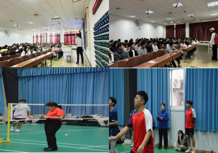 本次培训班共有来自365电子娱乐官方网站、湖北恩施学院、恩施职业技术学院等高校107名学员报名参训。按照课程安排,首先在10月26日,由国家级裁判刘家成老师为全体学员就“羽毛球裁判管理办法、裁判员守则与裁判员道德行为规范、理论培训内容预习以及羽毛球计分表的使用”等内容的展开授课。