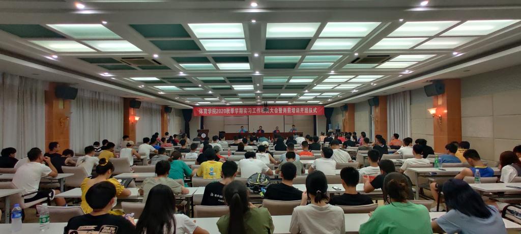 (通讯员 罗澜 胡胜涛 李润梓)8月31日,体育学院在德智楼三楼报告厅召开了2020年秋季学期实习工作动员大会暨岗前培训开班仪式。教务处副处长谭华,体育学院党总支书记、院长倪东业,党总支副书记何斌,副院长胡庆华,院办、学科建设科、教学科、学生科负责人、担任培训课程教师以及17级全体学生出席。会议由副书记何斌老师主持。