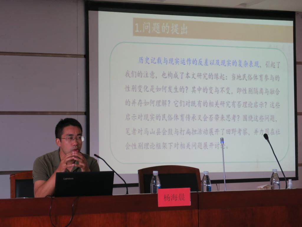 杨海晨教授通过在调研工作时的发现与研究,以民族体育文化中的会鼓、打扁担为切入点,向同学们展示了今人震撼的民族体育发展过程。会议中提到在体育运动中性别受限的问题,从性别隔离走向性别融合仍存在不平等的现象,并强调现在社会文化中,仍存在不平等的细节文化。讲座最后,2020级班主任张辉对杨海晨教授的到来表示感谢。