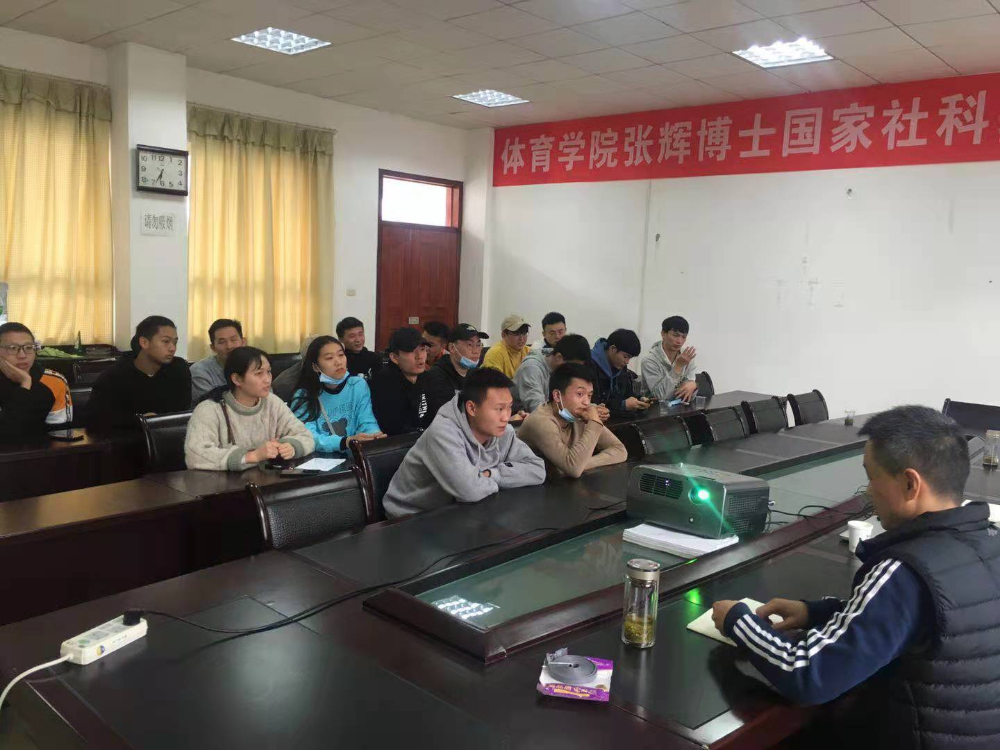 (通讯员 罗澜 胡胜涛 图片/胡胜涛)10月14日,在体育学院二楼会议室召开了绿葱坡滑雪实习基地学生见面座谈会。绿葱坡滑雪基地负责人胡陶木,基地总经理郑孝欢,我院副院长胡庆华,教学科副科长肖杰文以及我院2017级19名同学参加本次会议,会议由胡庆华主持。