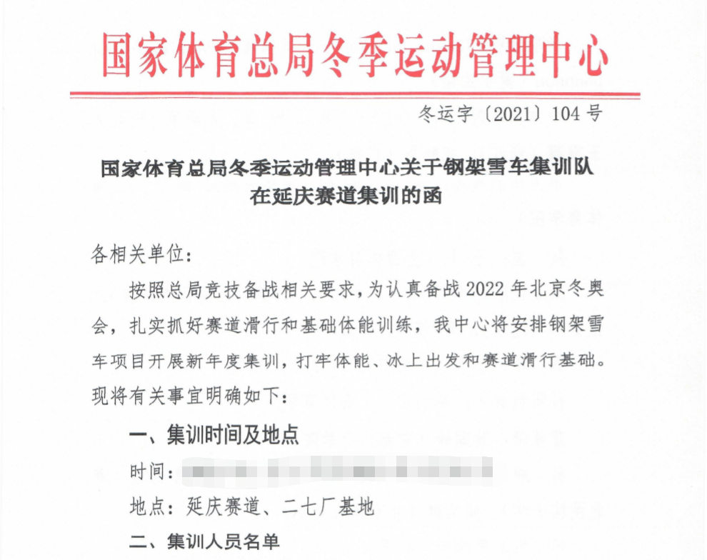 (因文件内容涉及国家队集训人员信息,为保密,故隐去部分信息)