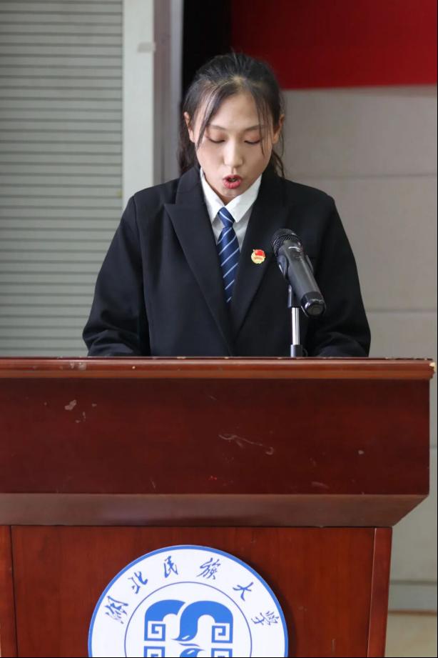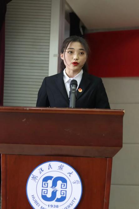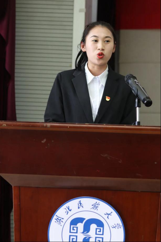校学生会代表许一柯讲话,她先肯定了我院学生会开展的形式多样内容丰富的校园文化活动,用实际行动谱写了青春华章。她表示青年是国家的未来,祖国的希望,中国梦是我们的,更是青年一代的。希望青年学生能坚持思想引领、坚定信念、牢记使命,把握历史际遇和机缘,坚定自信、增强自觉,勇做走在时代前列的奋进者、开拓者、奉献者。