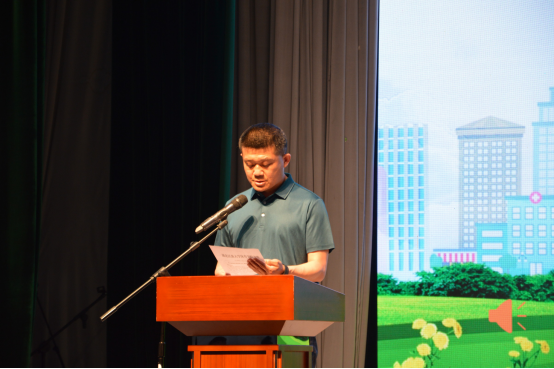 议程第四项由体育学院副院长胡庆华宣读2021年优秀运动员表彰文件,在此次运动会期间体育学院赛出了自己的风格和水平,20级刘金亮同学打破男子乙组三级跳远校记录、19级张向颖同学打破女子乙组跳高校记录,不仅为同学们树立了学习的榜样,更为学院赢得了荣誉。