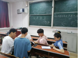 同时由预备党员带领入党积极分子的小组学党史也在积极展开,各小组学员学习情绪高涨,在小组内进行讨论学习交流。如图: