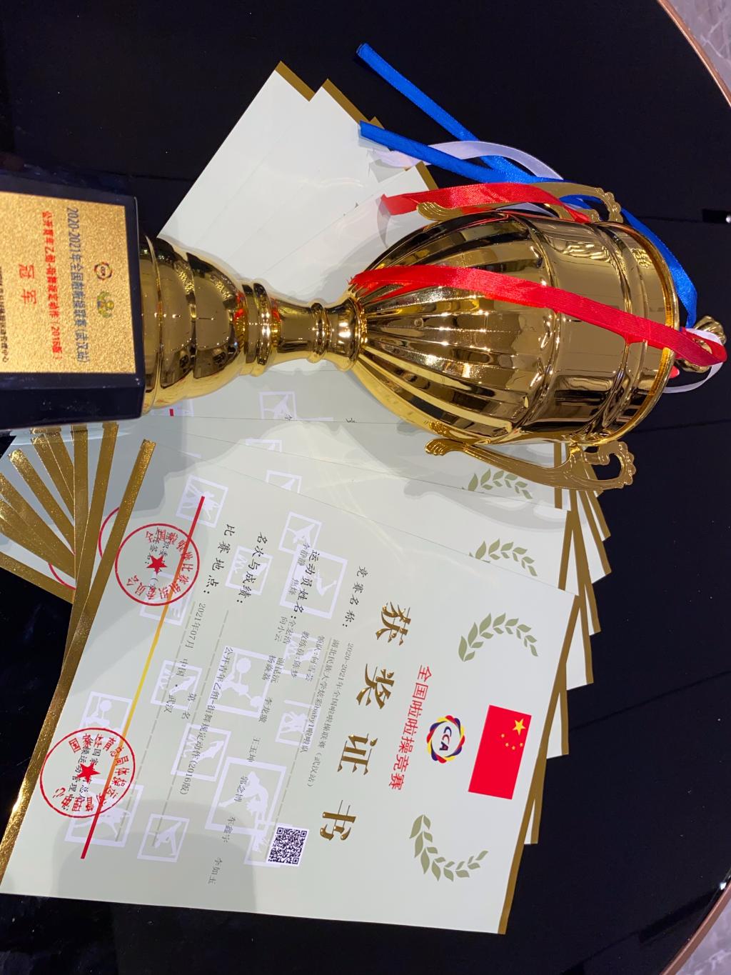 来自全国共218个备赛单位和代表队的4494余名运动员、教练员、裁判员参加了比赛。这来之不易的成绩来源于啦啦队为期三个月的刻苦训练,队员则由体育学院2018级健美操专选班学生组成。啦啦操队在队长全宏浩同学的带领下,利用每天晚上、周末的时间加班加点的训练。于此同时,队员们还承担着学校各种开幕式、晚会表演的重任,大家排除万难牺牲一切休息时间来做好各项工作。由于街舞啦啦操对身体要求很高,为此制定了科学的训练方案,第一个月身体开发,第二个月学习动作,第三个月编排队形、完善细化动作。由于受疫情的影响,原本是线下举行的比赛在临近出发时变成了线上比赛,队员的心情也经历了失落到努力的转变。虽然不能外出参加比赛,少了那份激动的心情,但是同学们调整好自己的状态,依然坚持训练,在拍比赛视频时把自己最好的那一面展示出来。