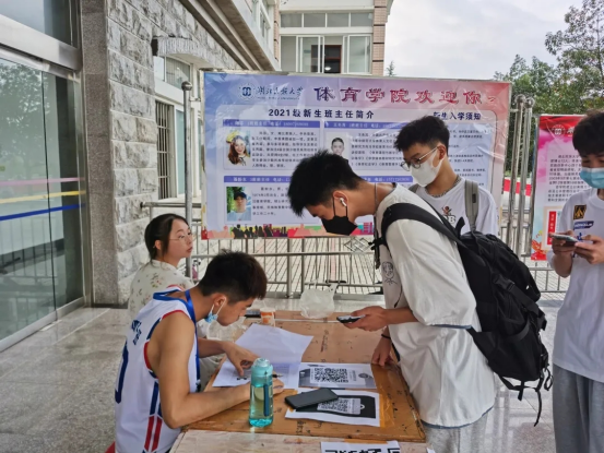 疫情无情人有情,进入365电子娱乐官方网站大门那一刻起,我们正式成为一名的大学生。独立正是一名大学生的第一课,我们2021级新生都做得非常棒!在体育学院门口有我们1班陈芬老师、2班王先茂老师、3班聂盼水老师、4班和5班张弋明老师是我们21级的班主任简介,同时在新生来之日他们都在学院门口迎接我们的新生们。我院安排学生值班,随时为新生提供帮助,答疑解惑。现场还设有失物招领处、民大商城等为大家提供服务.