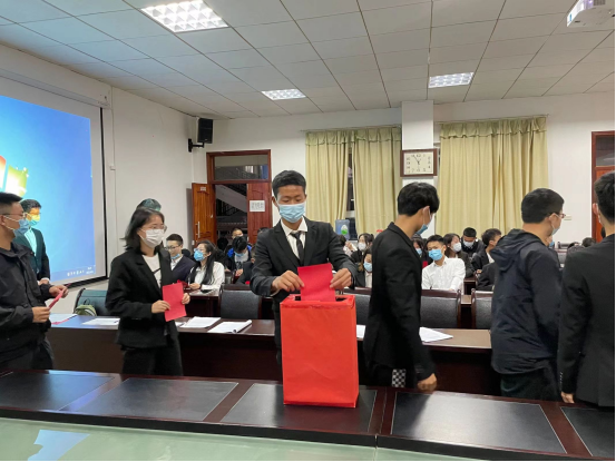 本次学代会共有4名同学参加学生会主席团的竞选,他们通过现场演讲的方式进行竞职演说。现场各位代表认真履行自己的职责,本着民主、公正、公平的原则,采用无记名投票的方式选举产生新一届的学生会主席团成员。