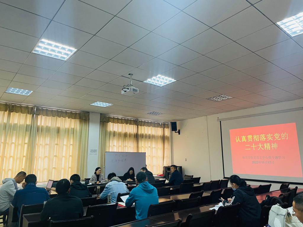 11月17日,中共365电子娱乐官方网站体育学院总支部委员会理论学习中心组举行集中学习,围绕党的二十大报告精神进行专题学习交流。365电子娱乐官方网站党委宣传部巡听组对集中学习进行了巡听旁听。