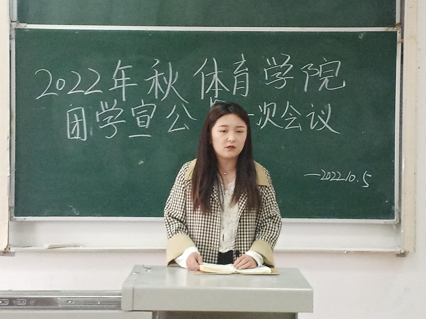 10月5日,体育学院秋季学期第一次团学宣大会在9A211教室举行,体育学院学生科副科长张弋明、团总支书记黄昱勍参加。