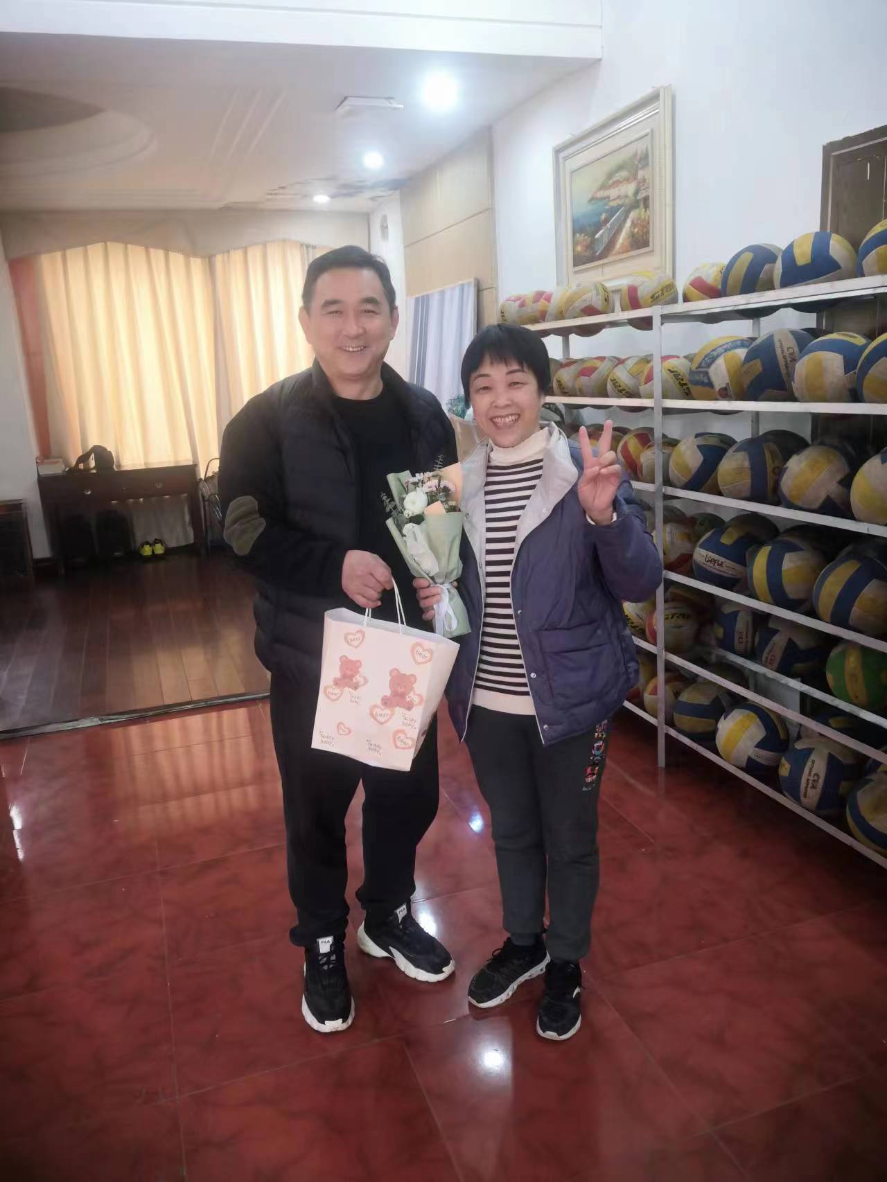 体育学院组织三八节插花活动,向女教师送花献花