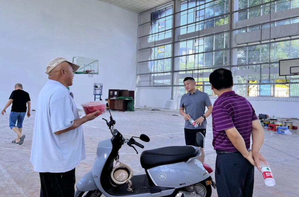 期间,学院领导一行也看望了暑期加班加点进行场地维修的一线工人,对他们的辛勤付出表示衷心感谢,并送上清凉物品,嘱咐他们在完成工作的同时也要注意防暑降温,保障自身的身体健康。