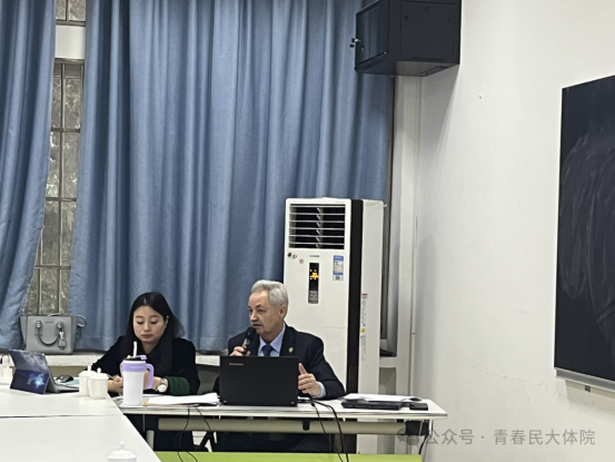 讲座现场,同学们热烈欢迎拜科夫斯基教授的到来。拜科夫斯基教授依次向此次讲座的参与者们介绍了俄罗斯大学的基本信息和非奥运项目-极限运动的种类,并阐述了其背后的运动风险等级划分以及参与各个项目的极限运动员所应具备的心理素质等,并就体育学院研究生提出的有关俄罗斯的体育热点问题、体育教师受重视程度、学校体育等问题进行了详细的解答。