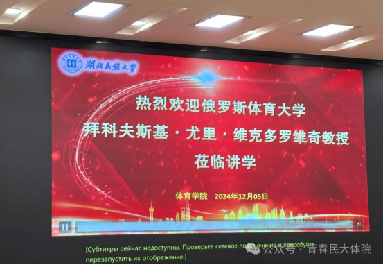 12月4日-5日,拜科夫斯基·尤里·维克多罗维奇教授莅临我校,先后为我院研究生和本科生开展了关于现代社会中运动员极限活动心理学的精彩讲座。讲座分别由何斌院长和张辉副院长主持,我院研究生和本科生参与。