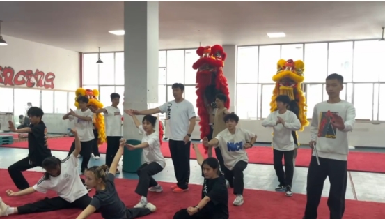 训练场上,处处可见同学们挥洒汗水的身影。裁判员代表队的同学们认真演练执裁流程,每一个手势、每一句口令都反复推敲;运动员代表队的同学们则专注投入各项训练,其中舞狮表演队的训练尤为引人注目。队员们不断重复着腾跃、翻滚等高难度动作,狮头与狮尾的配合必须达到毫秒不差的默契程度。狮头李贤钰同学和狮尾余家琴同学为了呈现最佳表演效果,常常在常规训练结束后主动加练,直到夜幕低垂。“每一次完美的配合都让我充满成就感”,余家琴同学一边擦拭汗水一边笑着说道。这种精益求精的态度,不仅是对传统技艺的传承,更是对团队协作精神的生动诠释。与此同时,武术表演的训练同样热火朝天。同学们在杨伟康老师的专业指导下,将每一个动作都打磨得精准到位。通过日复一日的刻苦训练,同学们不仅掌握了规范的武术技法,更深刻领悟到传统武术所蕴含的坚韧品格与处世智慧。