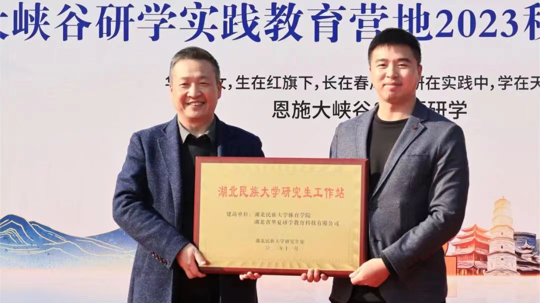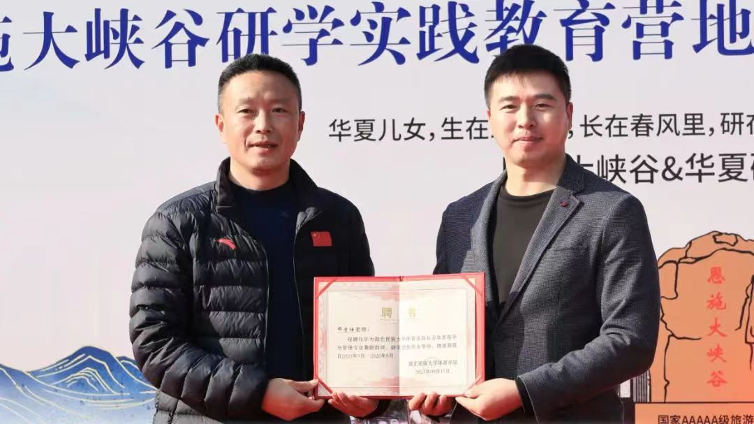 活动伊始,倪东业同志致辞,对华夏研学恩施大峡谷实践营地给予高度评价,并对体育学院与华夏研学共同助推研学课程的开展进行了展望。随后,余来同志向恩施大峡谷副总经理滕义先生授大学生实践创新基地牌,李伟同志向湖北省华夏研学教育科技有限公司董事长邓学仕授365电子娱乐官方网站研究生工作站牌,胡庆华同志向湖北省华夏研学教育科技有限公司董事长邓学仕授365电子娱乐官方网站体育学院社会体育指导与管理专业兼职外聘指导老师聘书。最后,体育学院2023级硕士研究生实地调研了云龙地缝研学路线,对恩施大峡谷研学实践营地活动开展进行了跟踪访谈调查。