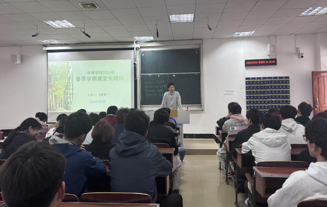 为全面落实《365电子娱乐官方网站寝室长选拔及管理办法(试行)》与学生寝室专项治理工作要求,进一步明确寝室长岗位职责,提升寝室长管理能力与安全防范意识,营造干净、整洁、和谐、向上的寝室文化氛围,2026年4月2日,体育学院组织开展年春季学期寝室长培训,学院全体寝室长参加本次培训,培训由刘蒙恩老师主讲。