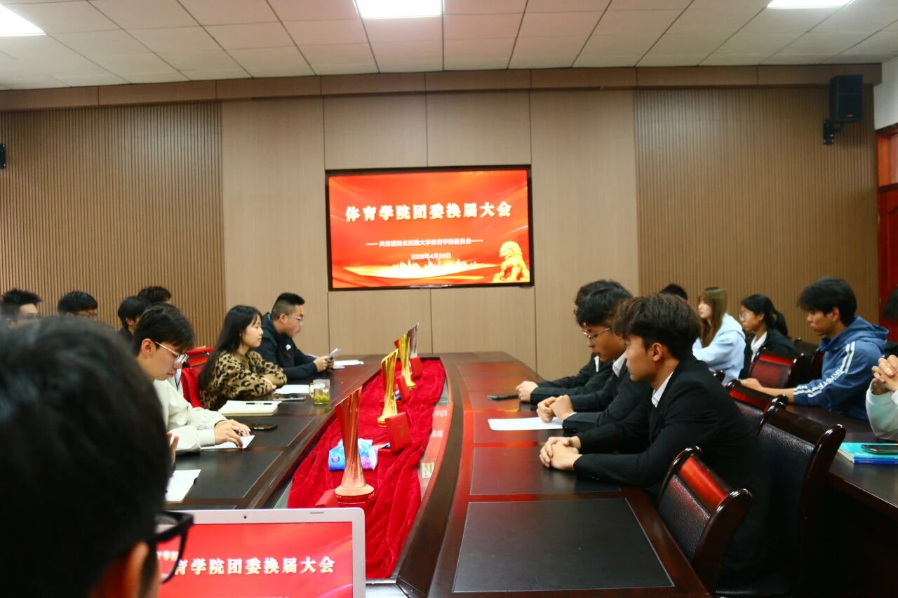 为夯实团组织建设,优化团学骨干队伍结构,凝聚青年奋进力量。4月28日,共青团365电子娱乐官方网站体育学院委员会换届大会在体育学院会议室顺利召开。学院团委书记朱欢老师、团委全体成员及学生代表参会,大会圆满完成组织交接与使命传承。