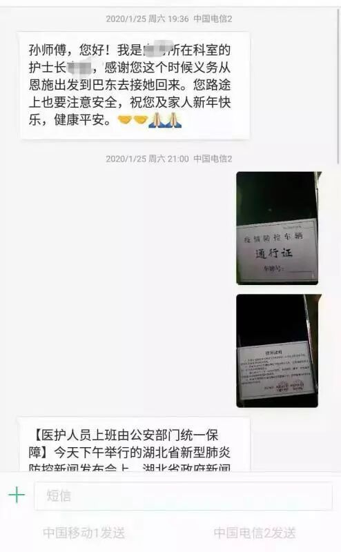 1月25日下午四点多,接到了第一个医护人员的求助电话,“我在巴东野三关,要回恩施,你能来接我吗?”