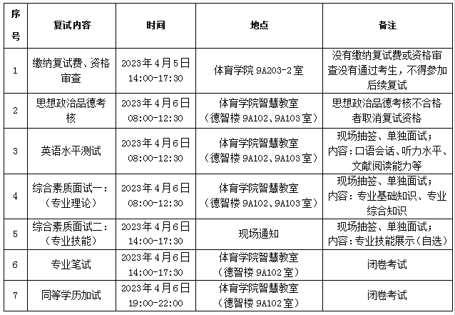 365电子娱乐官方网站体育学院2023年硕士研究生招生复试录取工作细则