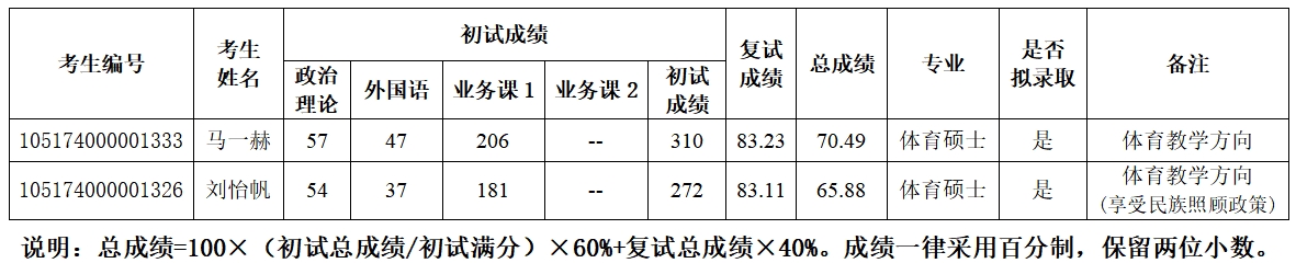 365电子娱乐官方网站体育学院2024年硕士研究生成绩及拟录取情况公示(递补录取)